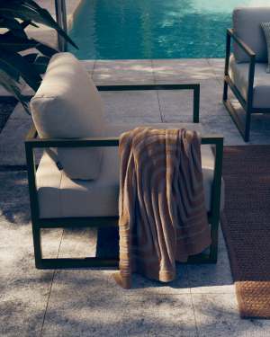 A minimalist design created from geometric lines: this is the basis of the Comova collection. Designed for modern exteriors, the visual lightness of its aluminium structure brings elegance to your spaces. The cushions with removable covers in this collection are made from 100% outdoor Crevin fabric, made with PET from recycled bottles.