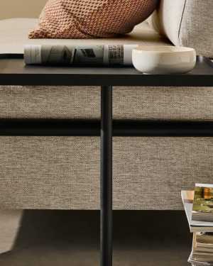 Its seat is made of foam and acrylic fibres that give it a medium-hard seat. The legs are formed by a black steel structure seen on the sides of the sofa and it has an internal structure of pine wood and E0 particle board and E0 MDF.